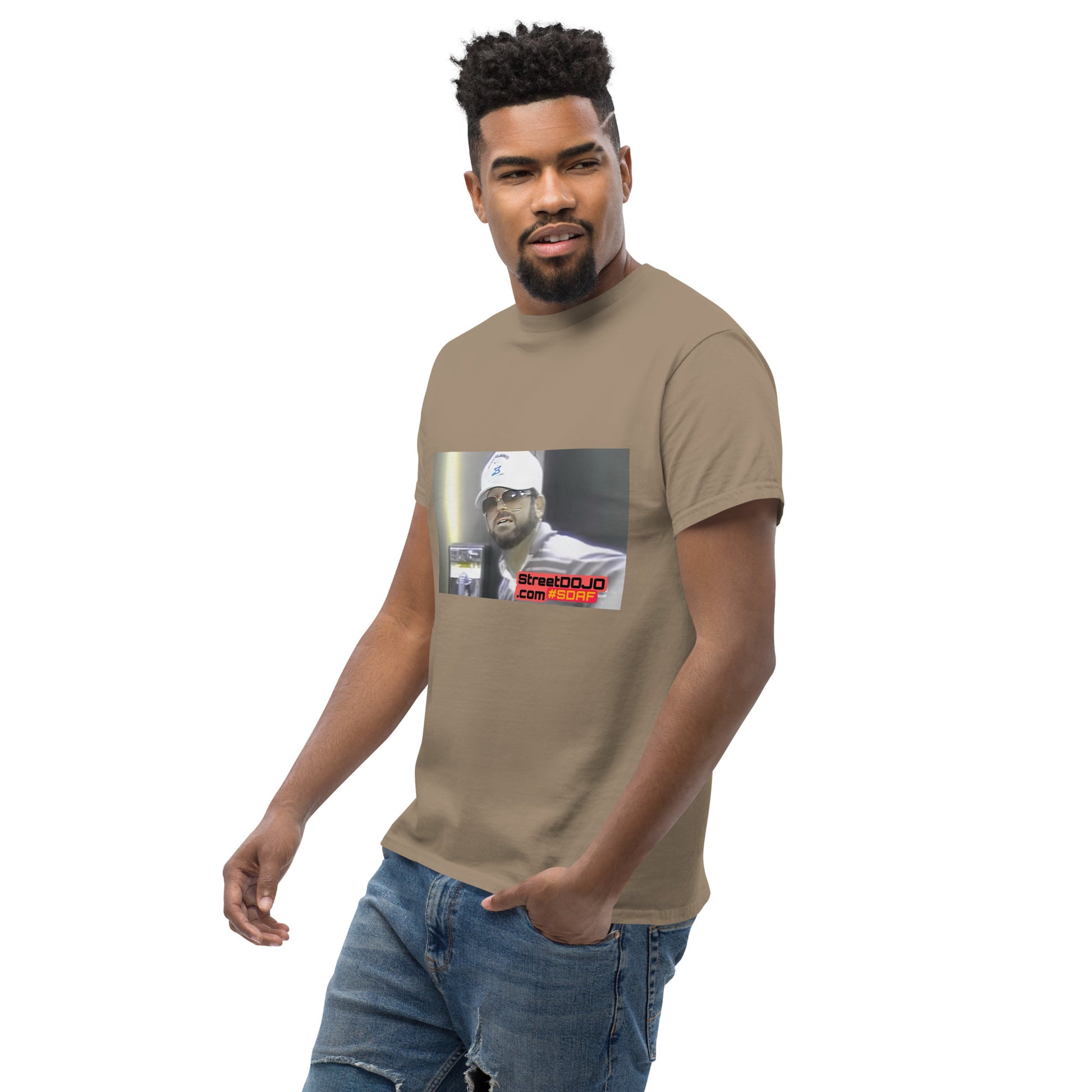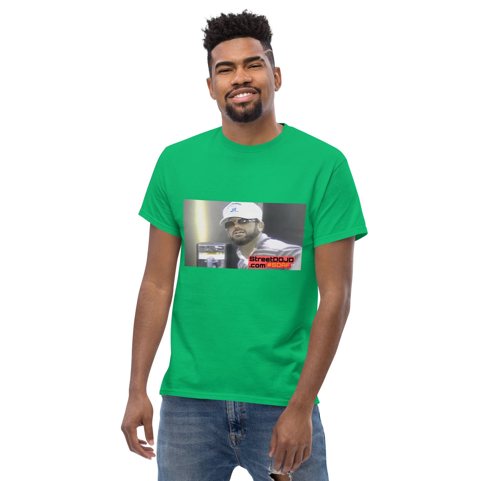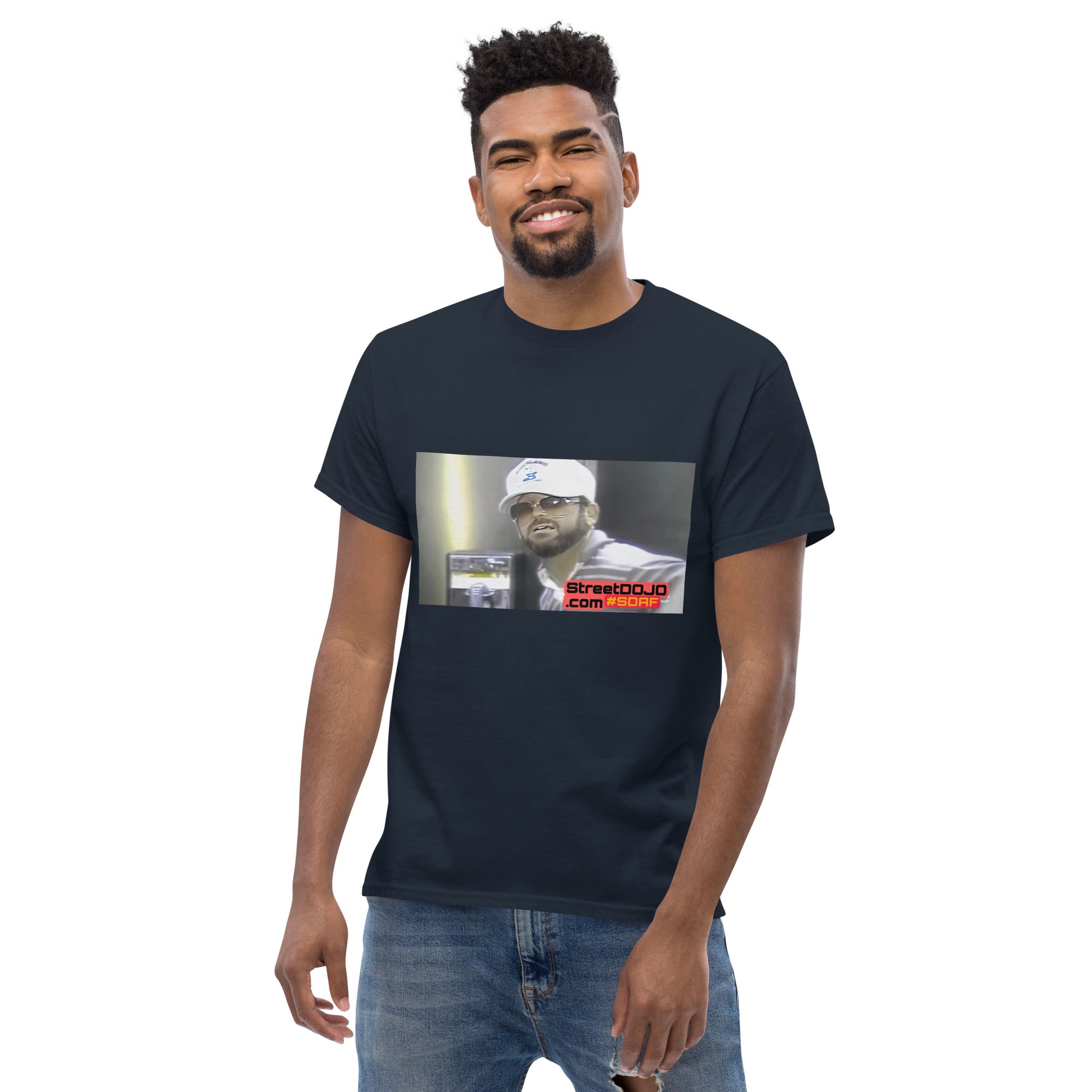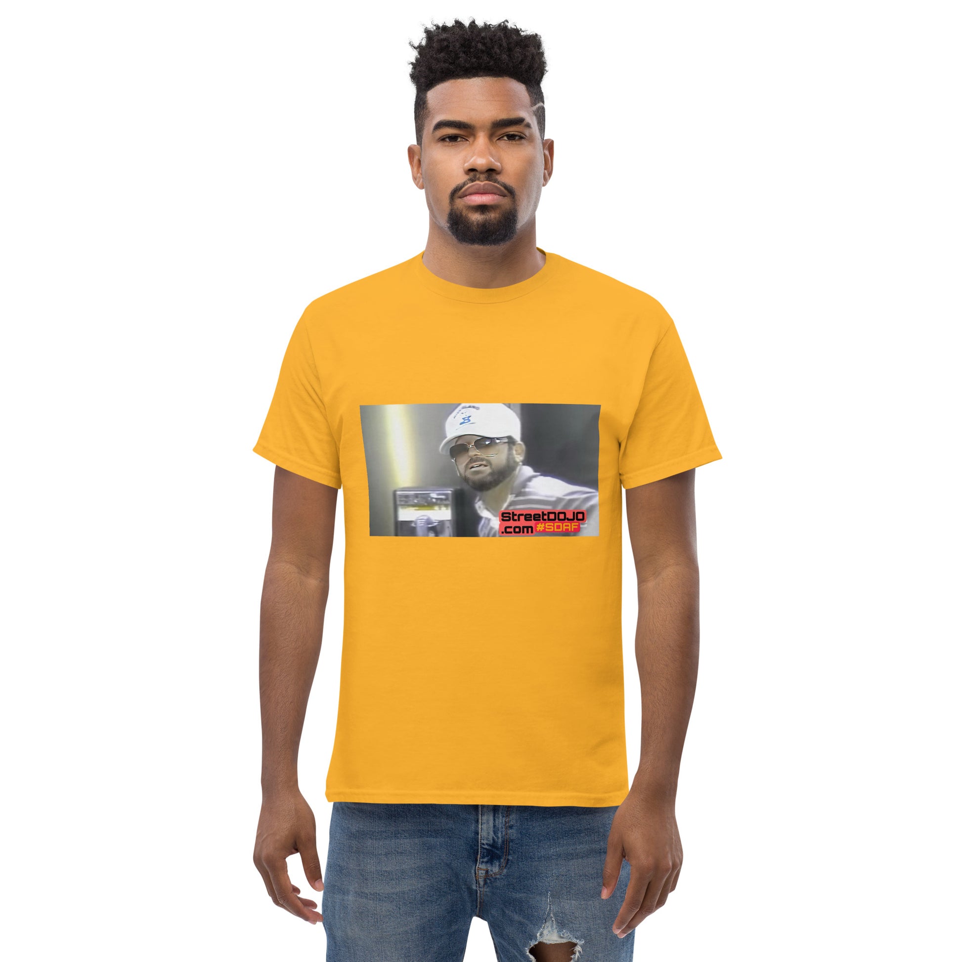 The 100% cotton men's classic tee will help you land a more structured look. It sits nicely, maintains sharp lines around the edges, and goes perfectly with layered streetwear outfits. Plus, it's extra trendy now!