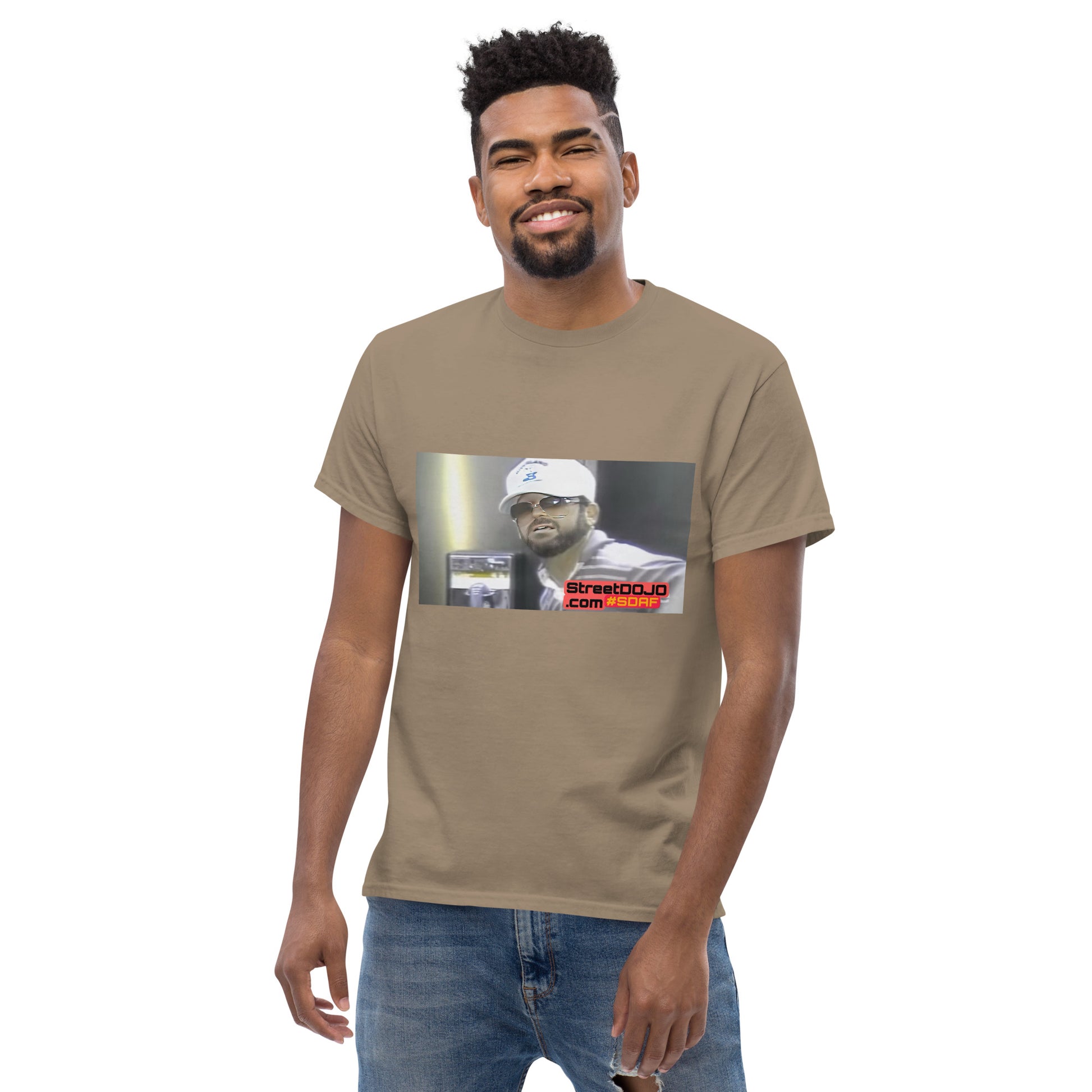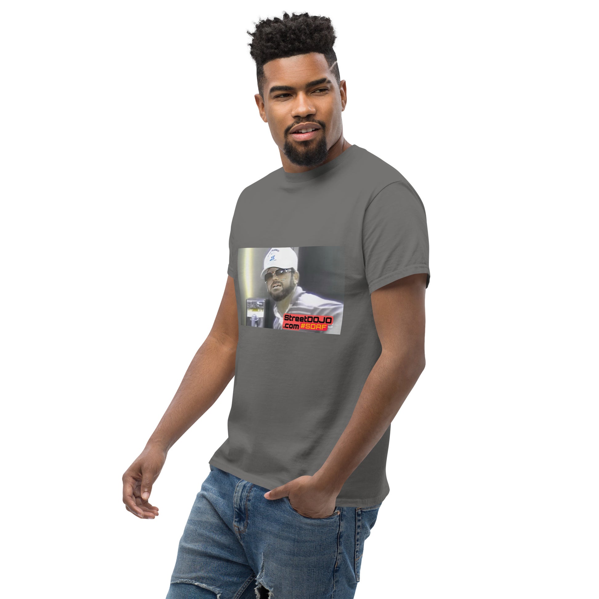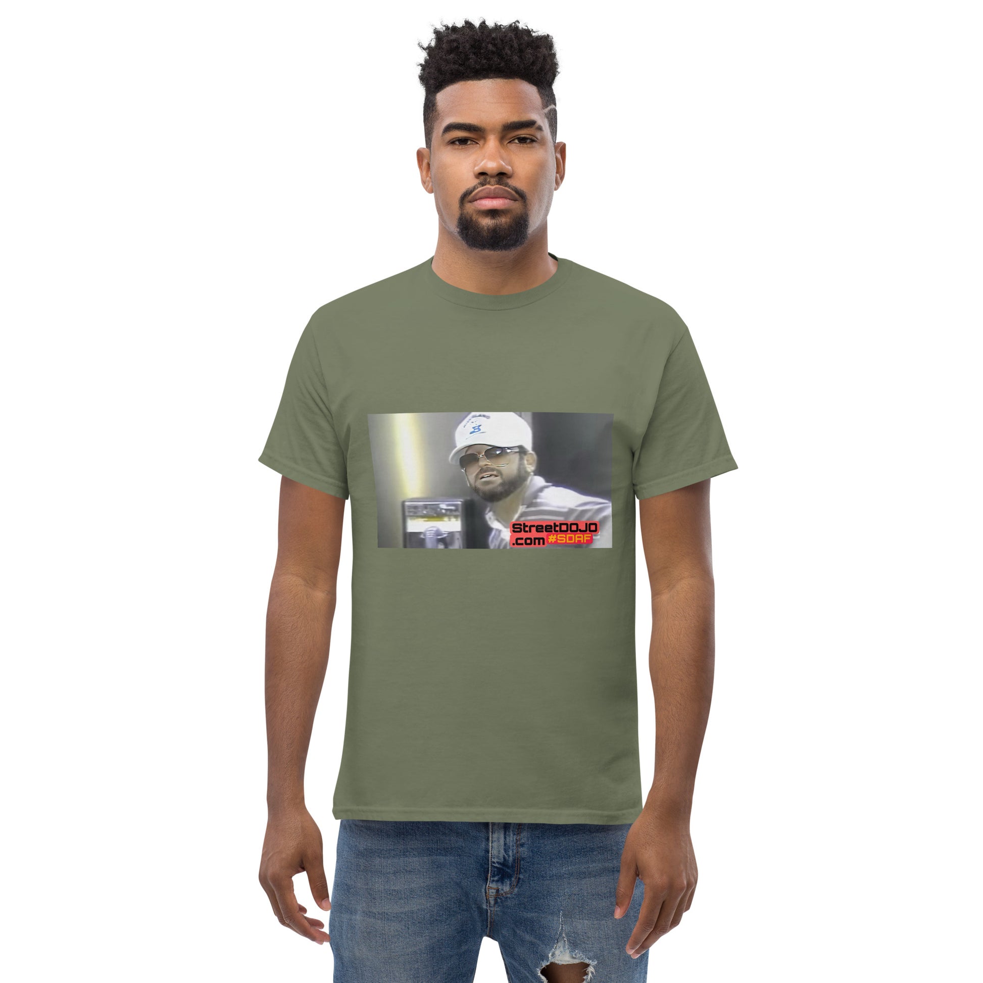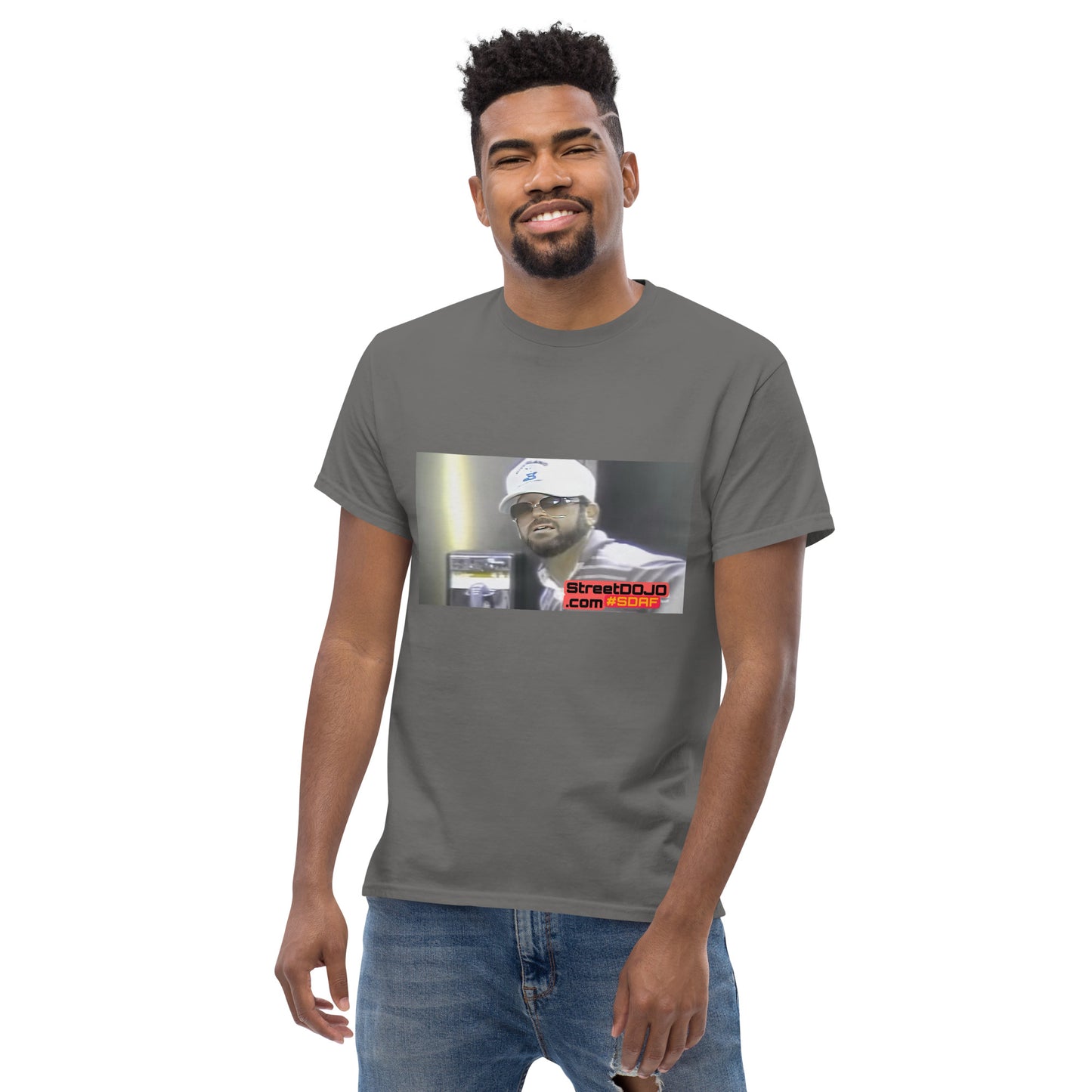 The 100% cotton men's classic tee will help you land a more structured look. It sits nicely, maintains sharp lines around the edges, and goes perfectly with layered streetwear outfits. Plus, it's extra trendy now!