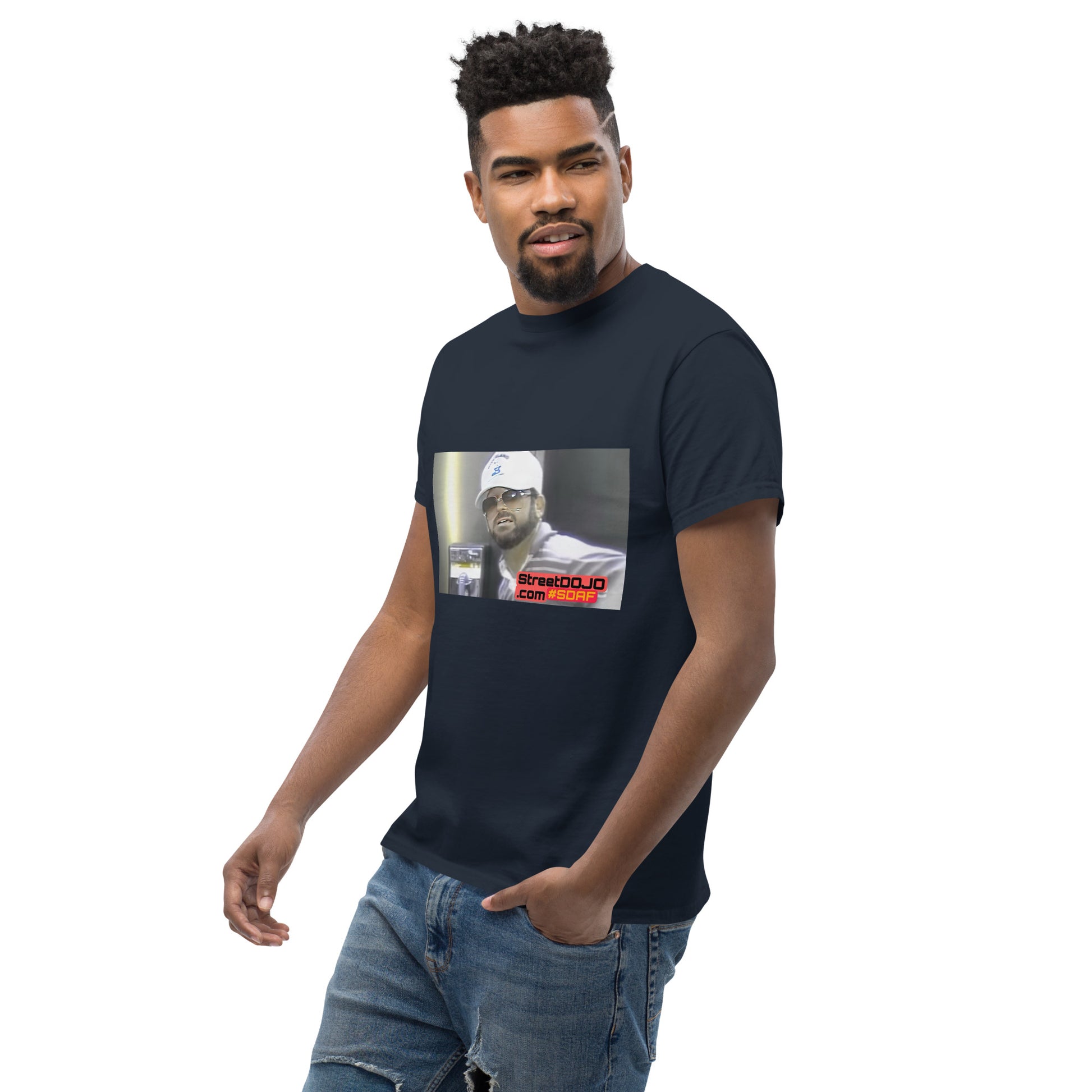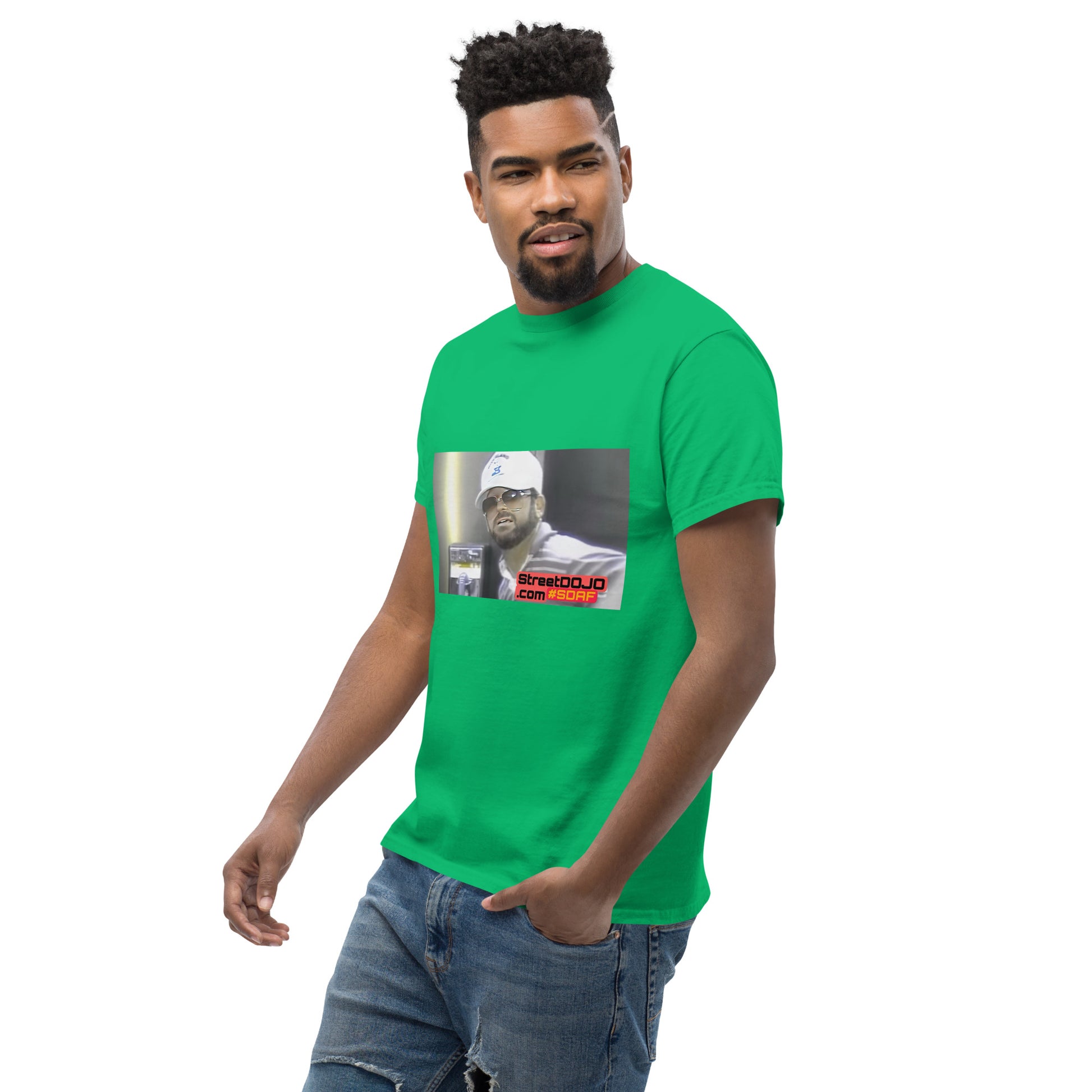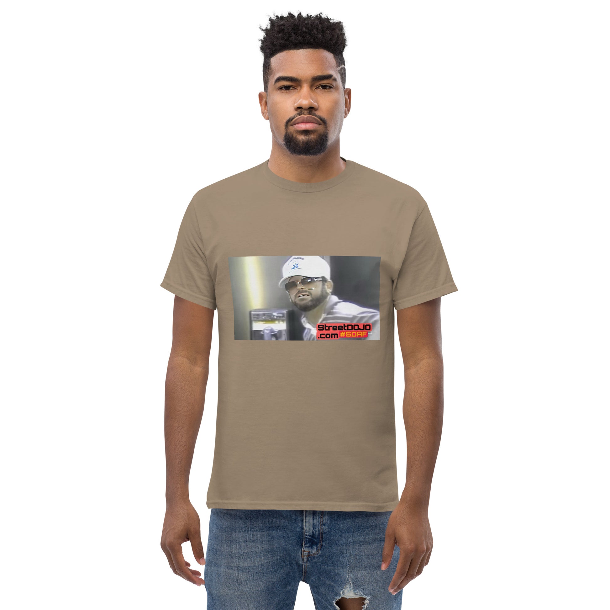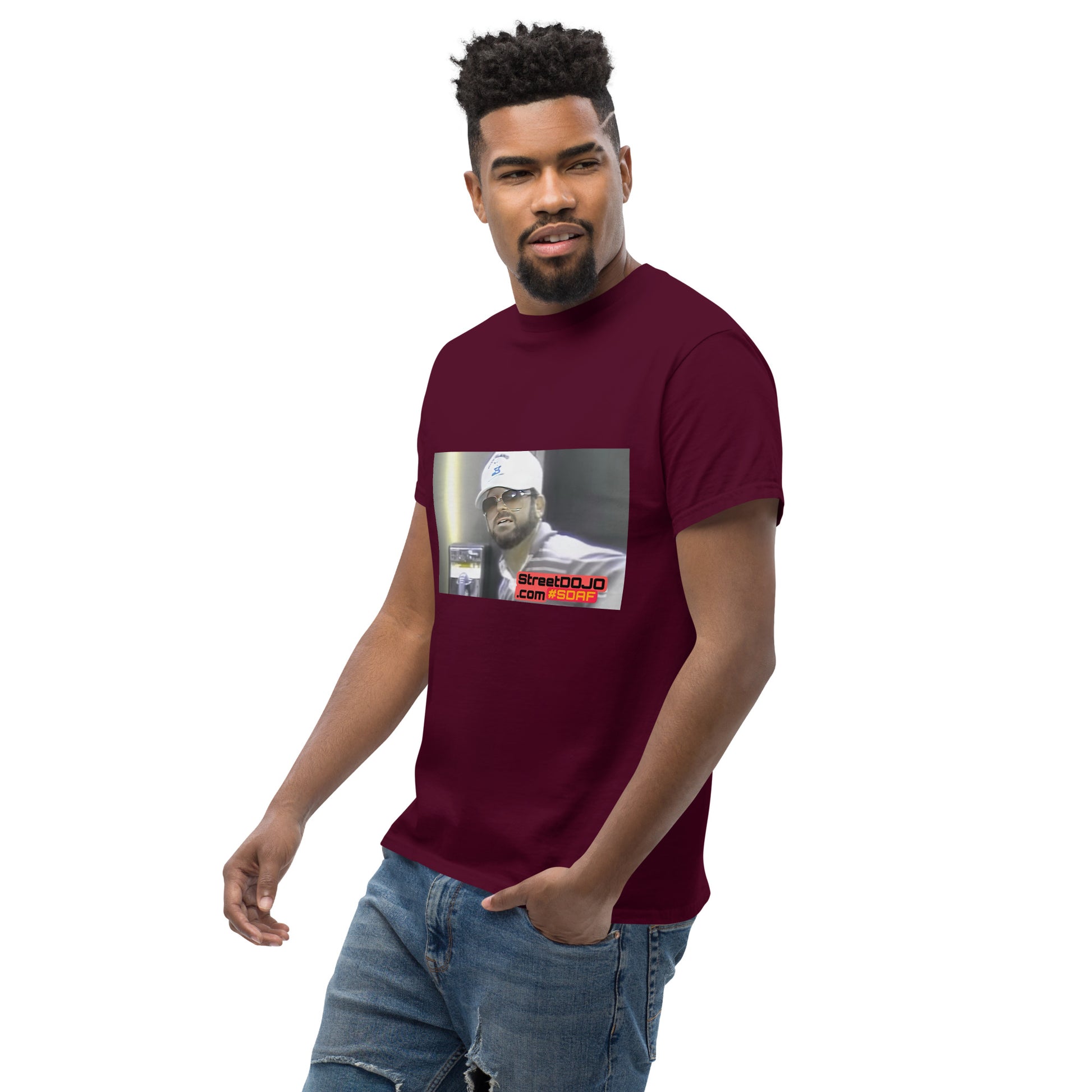 The 100% cotton men's classic tee will help you land a more structured look. It sits nicely, maintains sharp lines around the edges, and goes perfectly with layered streetwear outfits. Plus, it's extra trendy now!