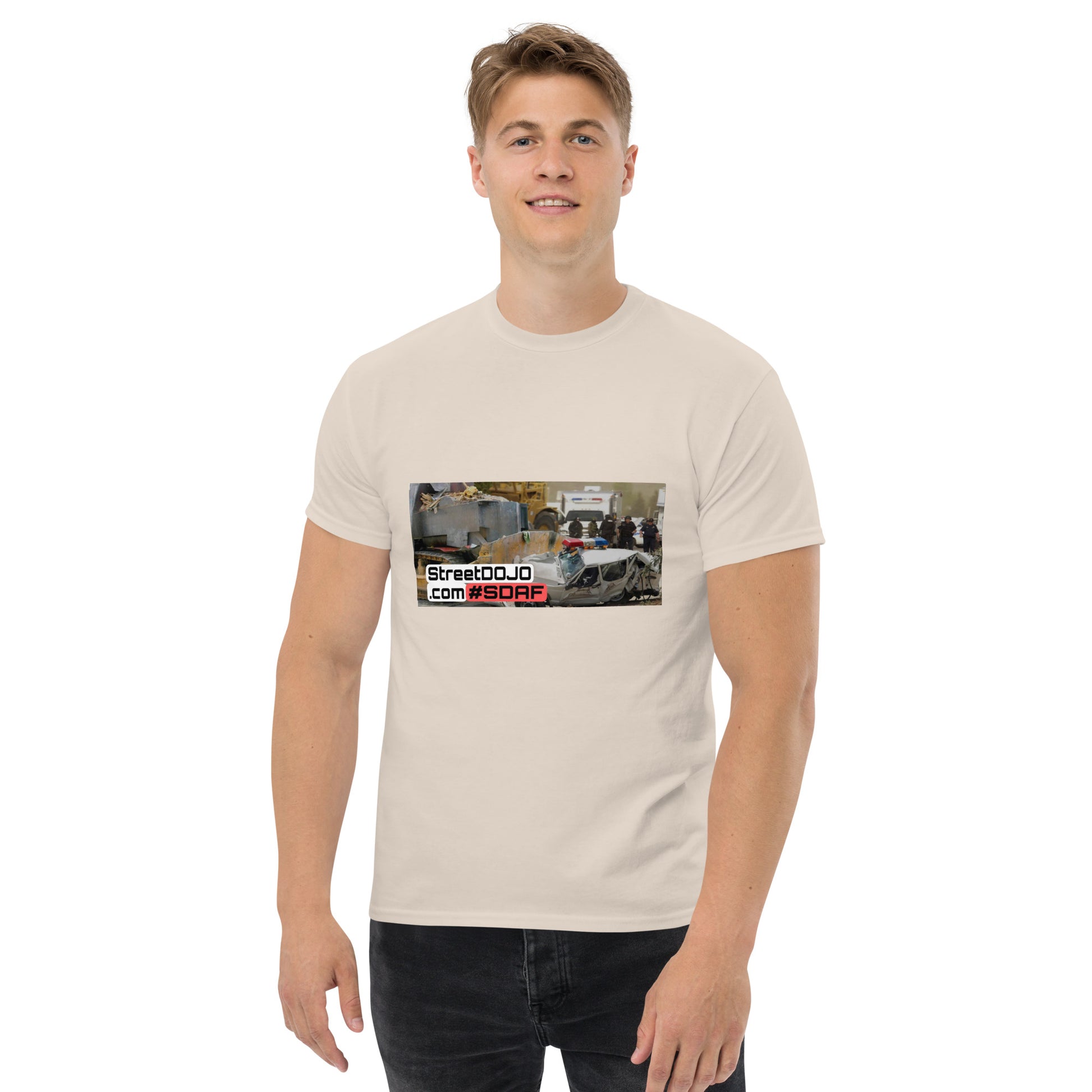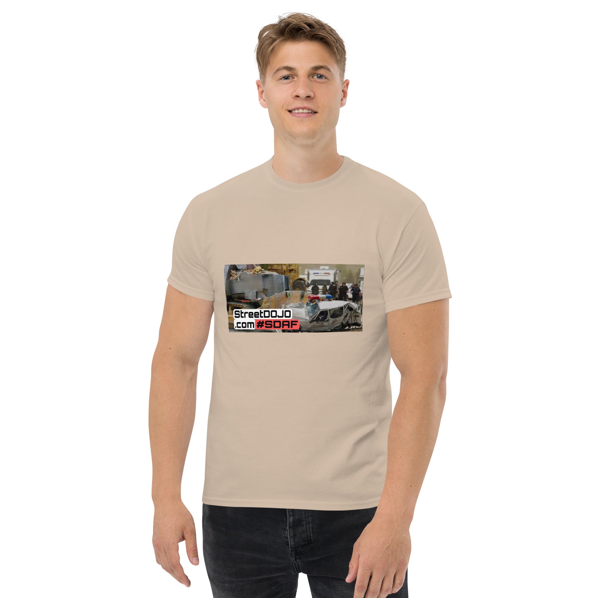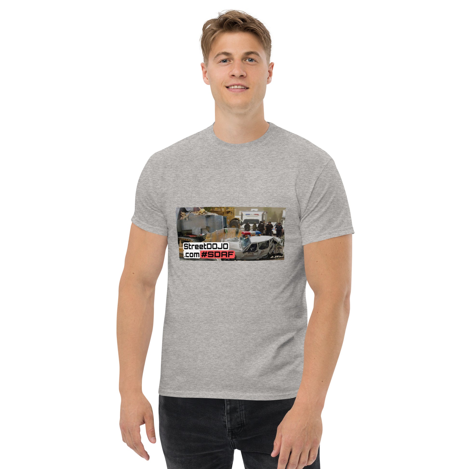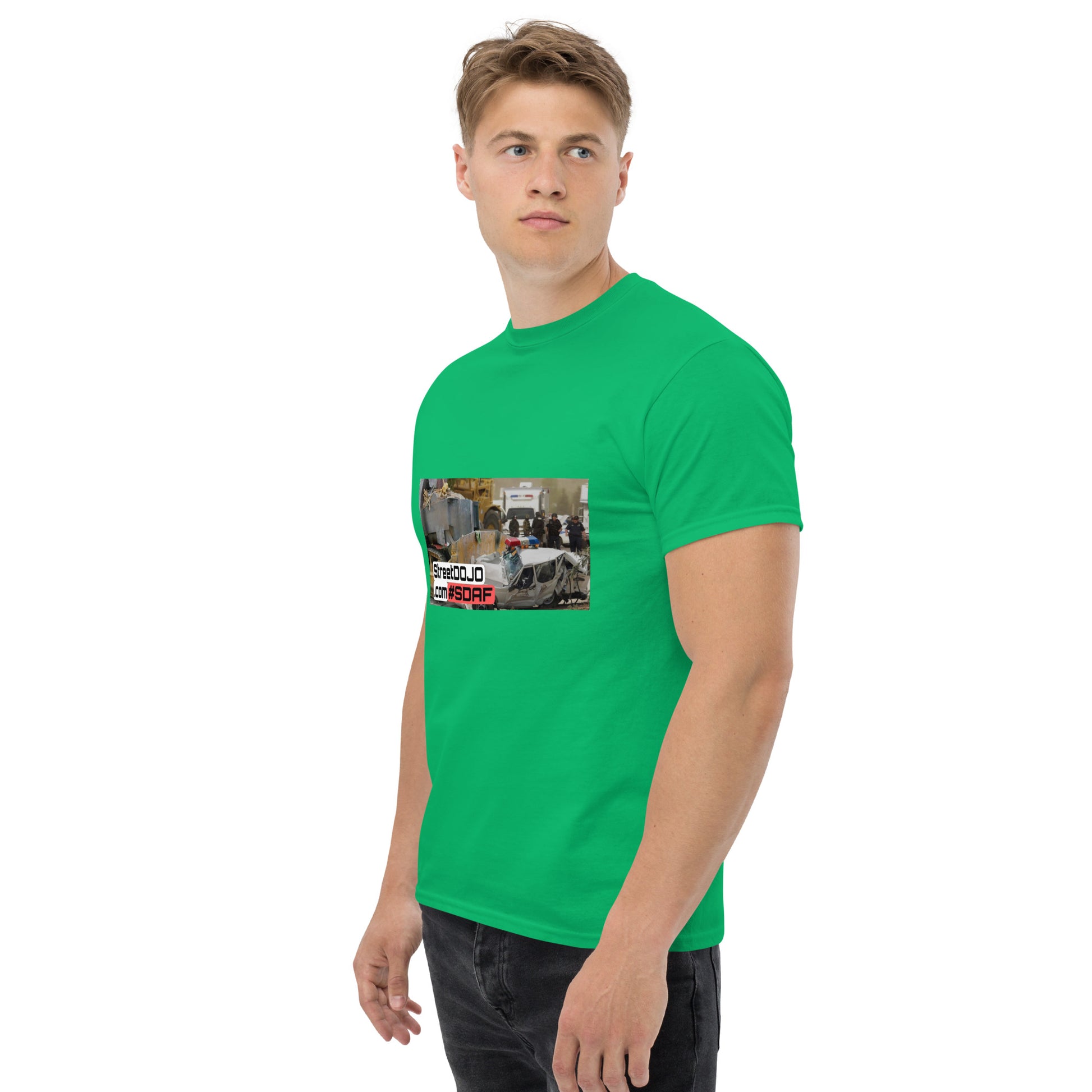 The 100% cotton men's classic tee will help you land a more structured look. It sits nicely, maintains sharp lines around the edges, and goes perfectly with layered streetwear outfits. Plus, it's extra trendy now!